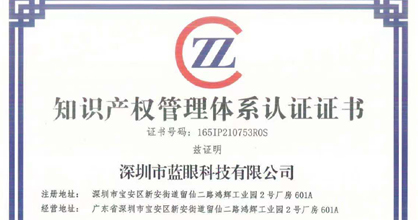 藍眼科技獲得國家知識產(chǎn)權(quán)管理體系現(xiàn)場認證證書