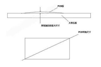 PCB翹曲度的測試方法應(yīng)遵照IPC-TM-650.2.4.22B里面的規(guī)定,首先將PCB板放于平整大理石臺(tái)面或者厚度大于5MM的玻璃上面,使用測試針規(guī)插到翹曲度最大的地方,測量出來尺寸,然后和PCB對角的長度尺寸相除,得到比例大于0.75%,即為翹曲。